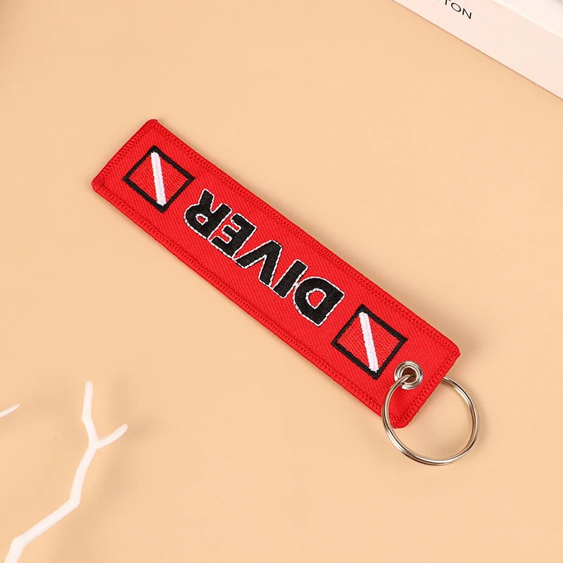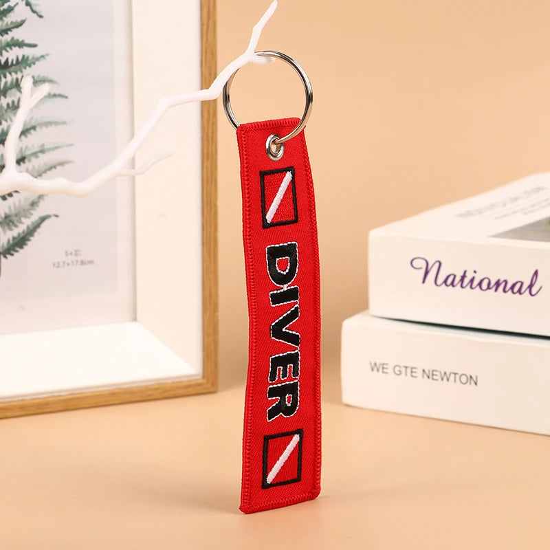 DIVER Embroidered Car & Motorcycle Keychain – Red Fabric Key Ring for Riders, Luggage & Aviation Fans