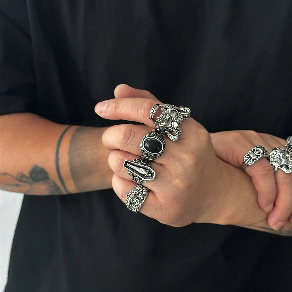 Gothic Punk Skull Ring – Adjustable Coffin & Mummy Vampire Design for Men