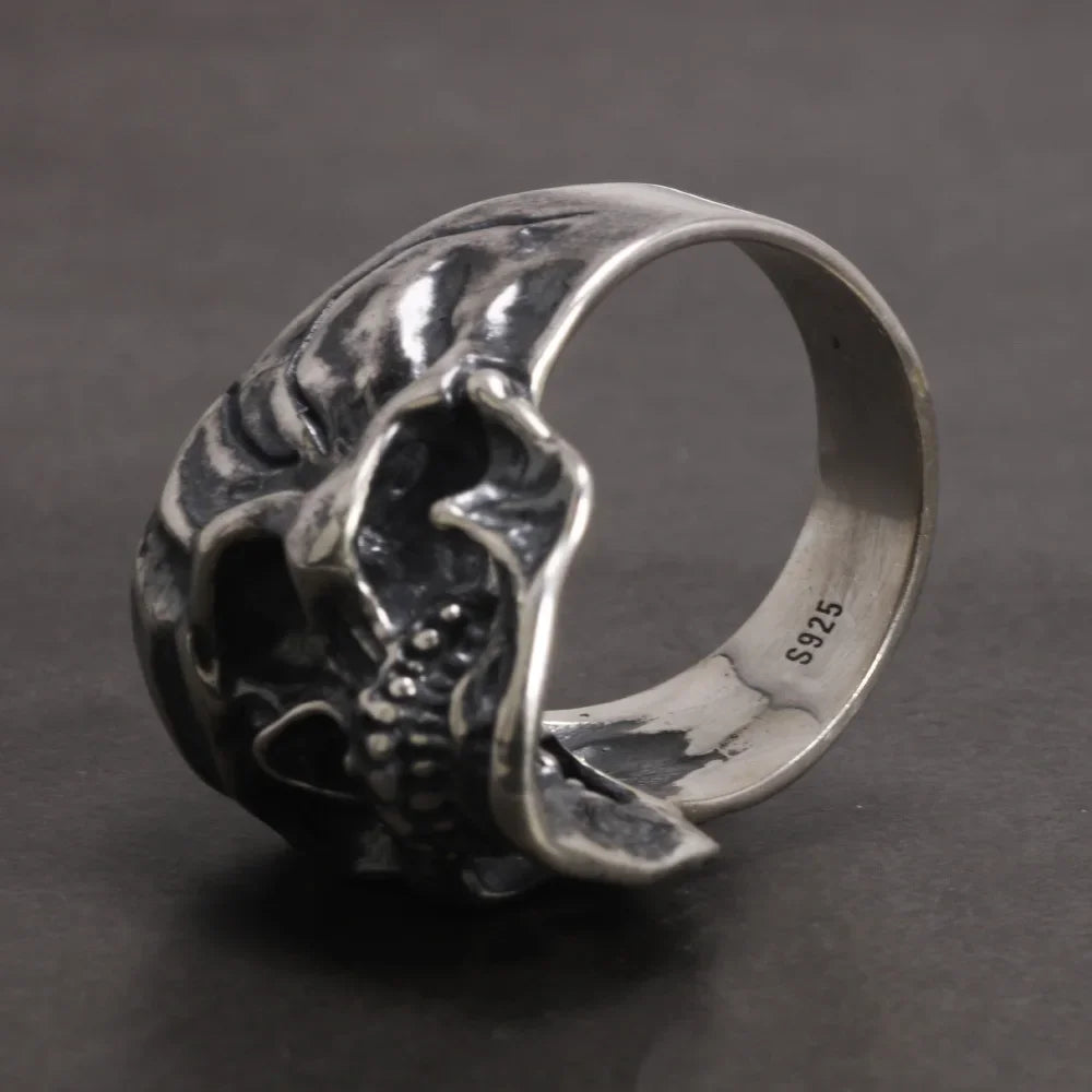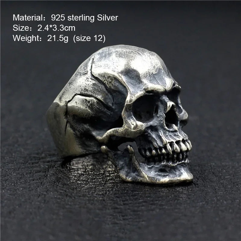 Heavy Punk Skull Ring for Men – Real 925 Sterling Silver Biker Skeleton Band