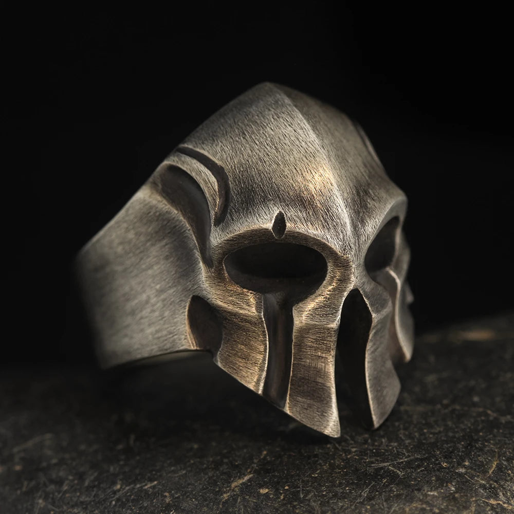 Men’s Spartan Warrior Skull Knight Helmet Mask Ring – Biker Style in 925 Sterling Silver