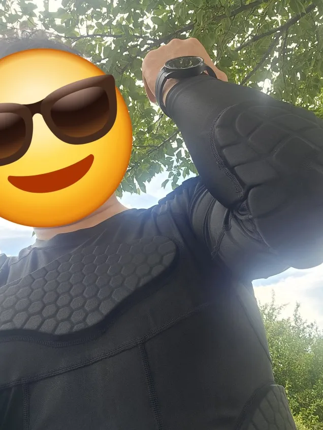 Includes compression shirt and pants with built-in protective armor