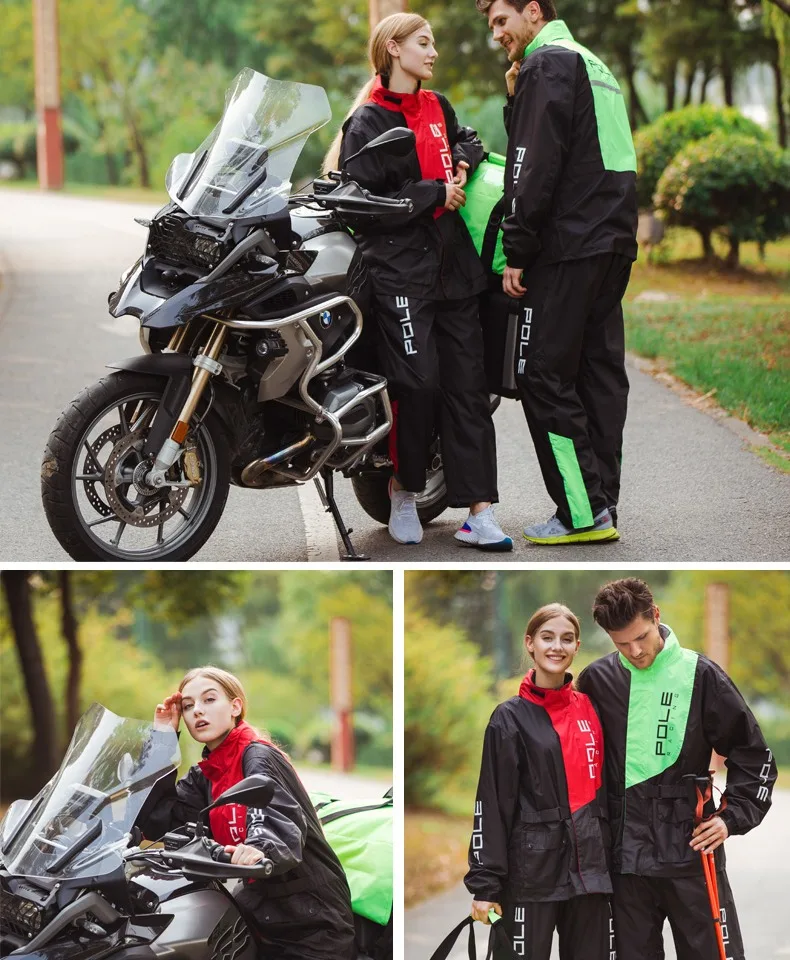 POLE Motorcycle Raincoat Set – Waterproof & Breathable Riding Gear with Reflective Safety Design