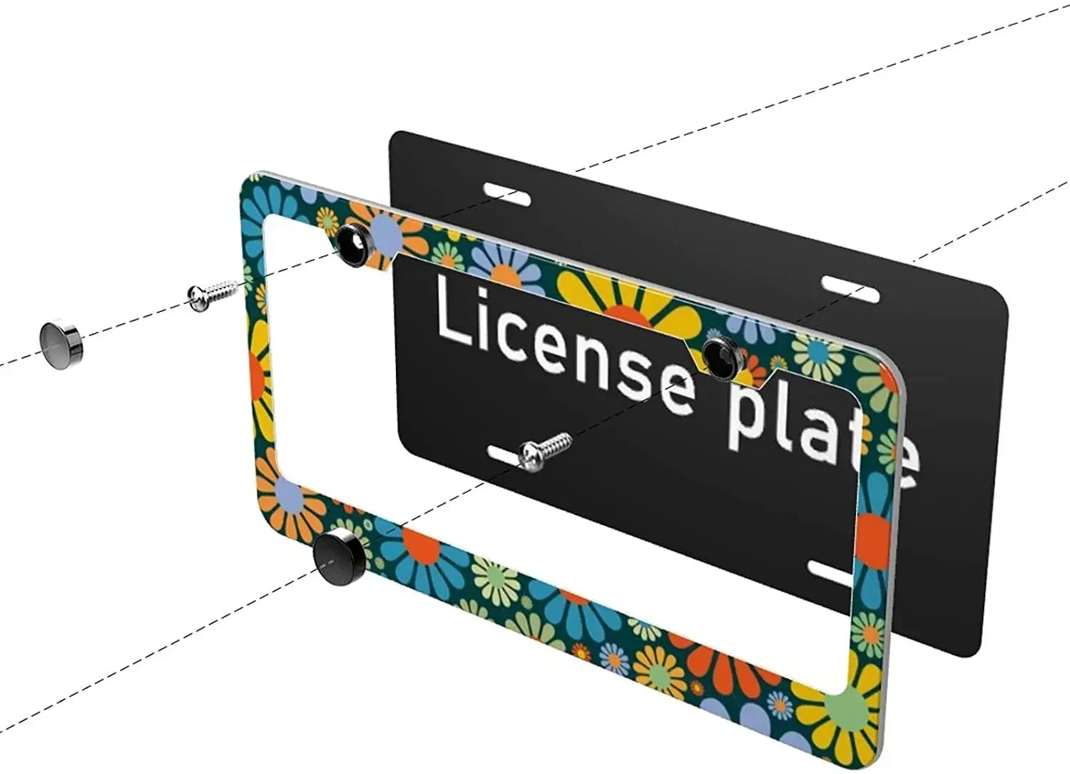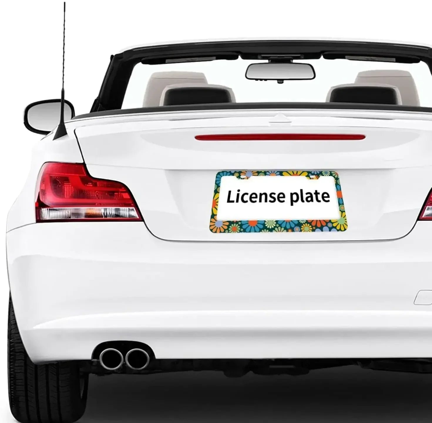 DIY Custom Car License Plate Frame Set – Metal Sign Decor with Screw Caps for US/CA Vehicles