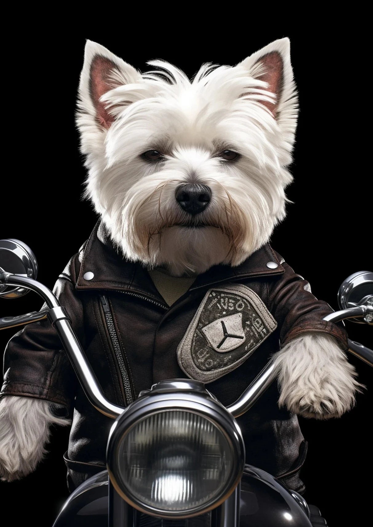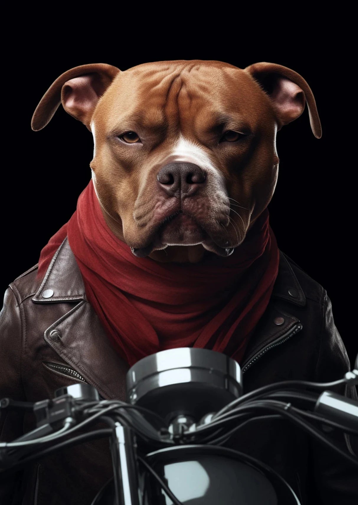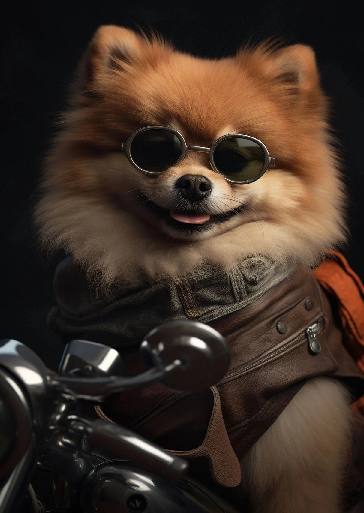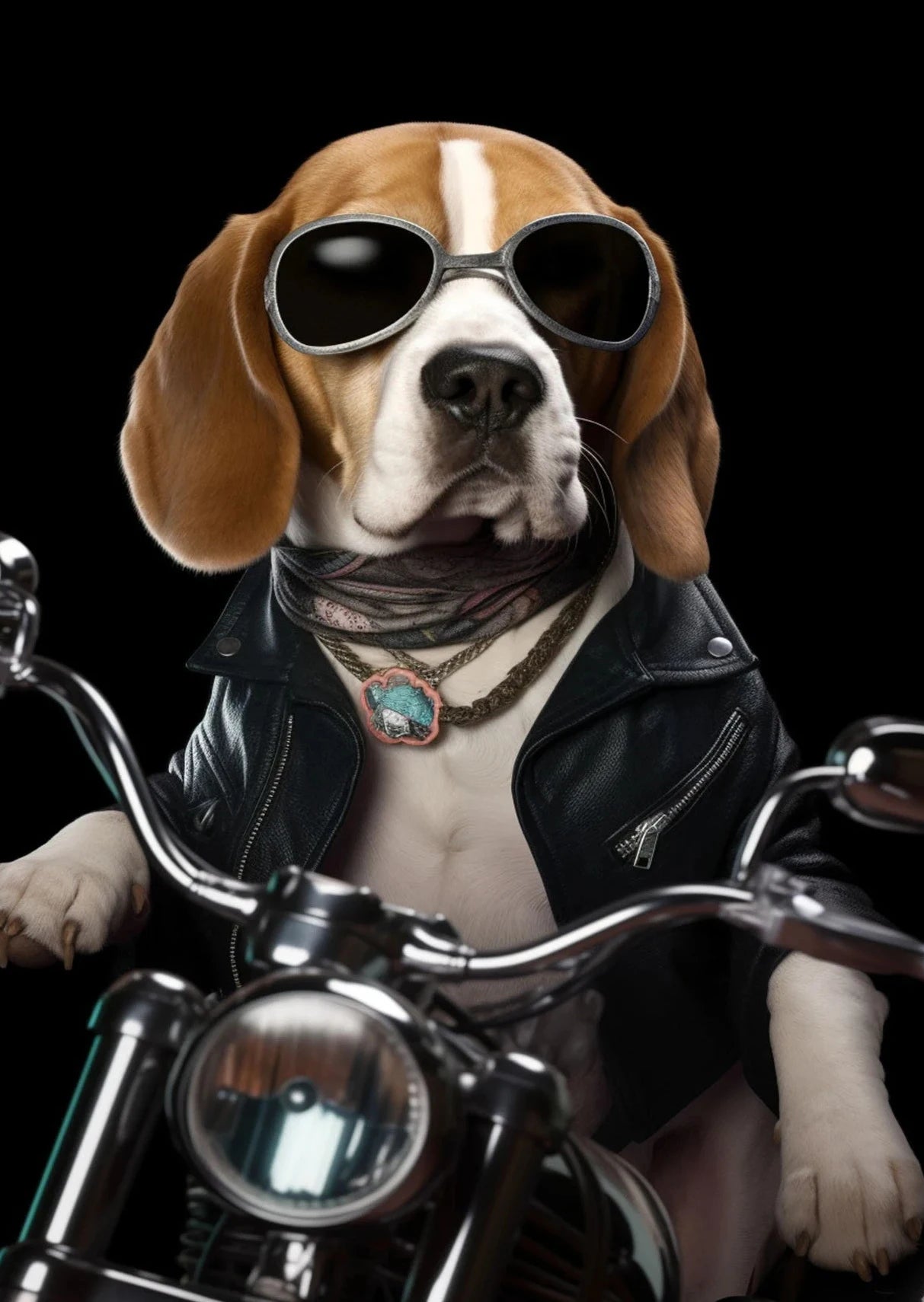 Hilarious artwork of a dog and cat on a motorcycle in cartoon or realistic style