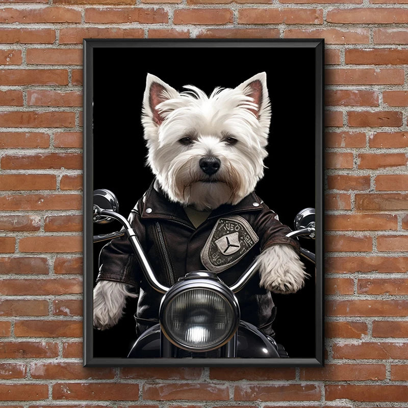 Funny Dog & Cat Riding a Motorcycle Poster – Nordic Style Canvas Wall Art for Living Room Decor (Unframed)