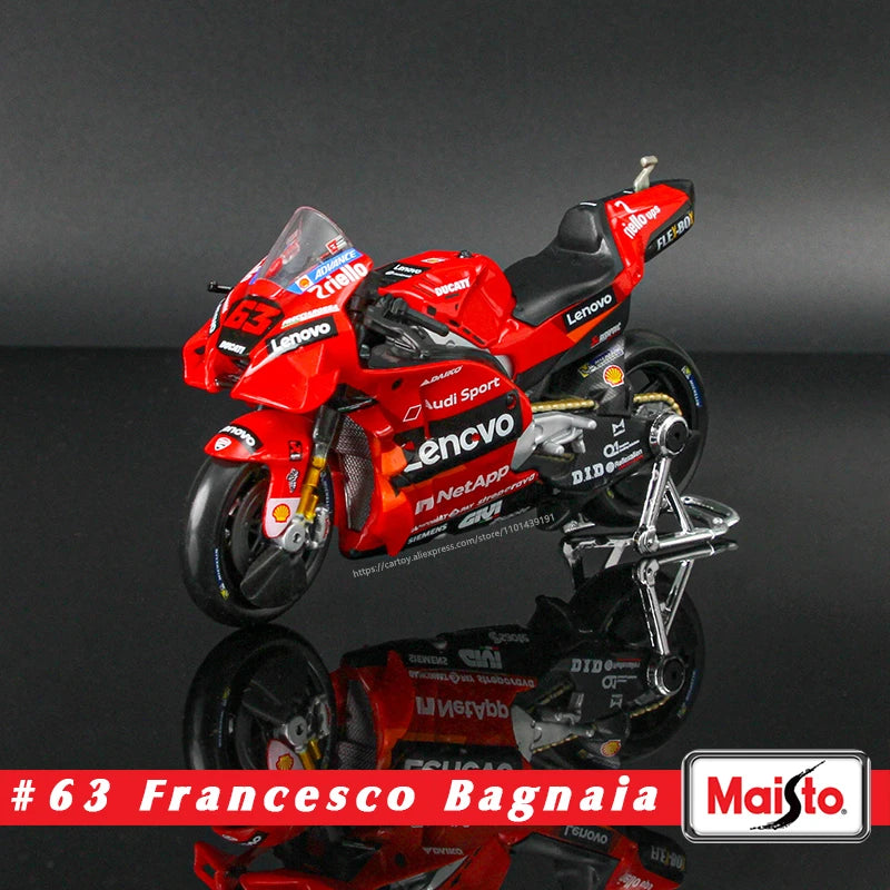 Celebrate MotoGP excellence with these officially licensed Maisto 1:18 scale diecast models featuring the 2022 Yamaha Factory Racing Team bikes of Franco Morbidelli (#21) and Fabio Quartararo (#20). Perfect for collectors, racing fans, and Yamaha enthusiasts.