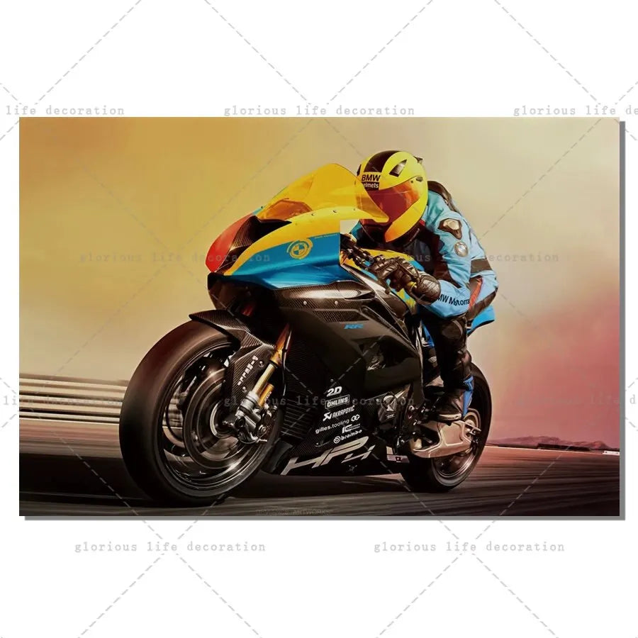 Motorcycle Racing Biker Canvas Art Poster – Sports Bike Wall Decor for Living Room & Bedroom