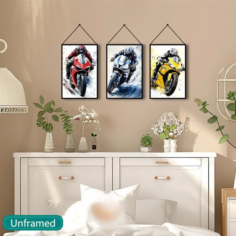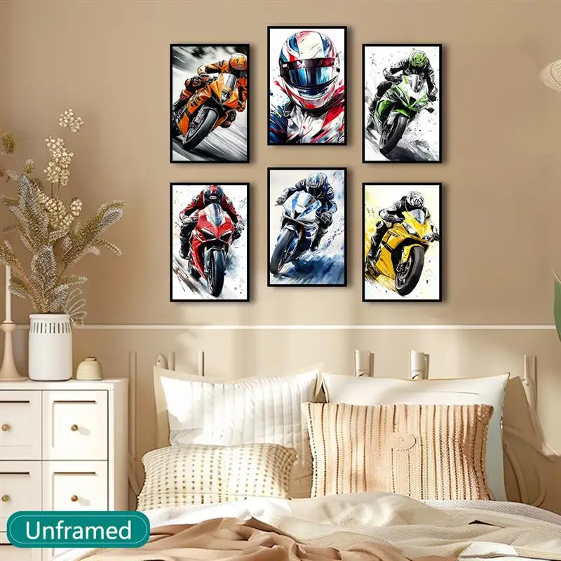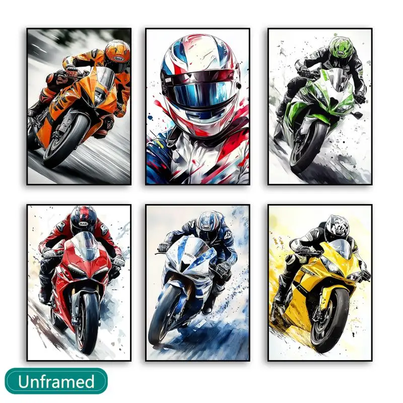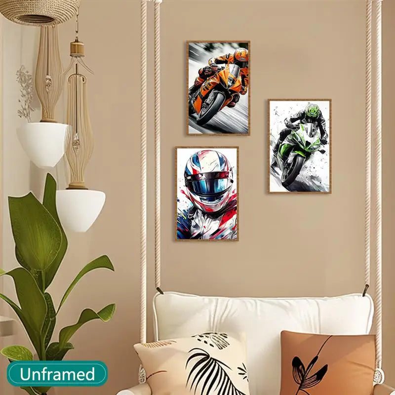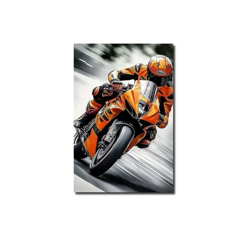 Ride hard, rest easy—add this unique motorcycle racing poster to your home and reflect your passion with style and purpose.