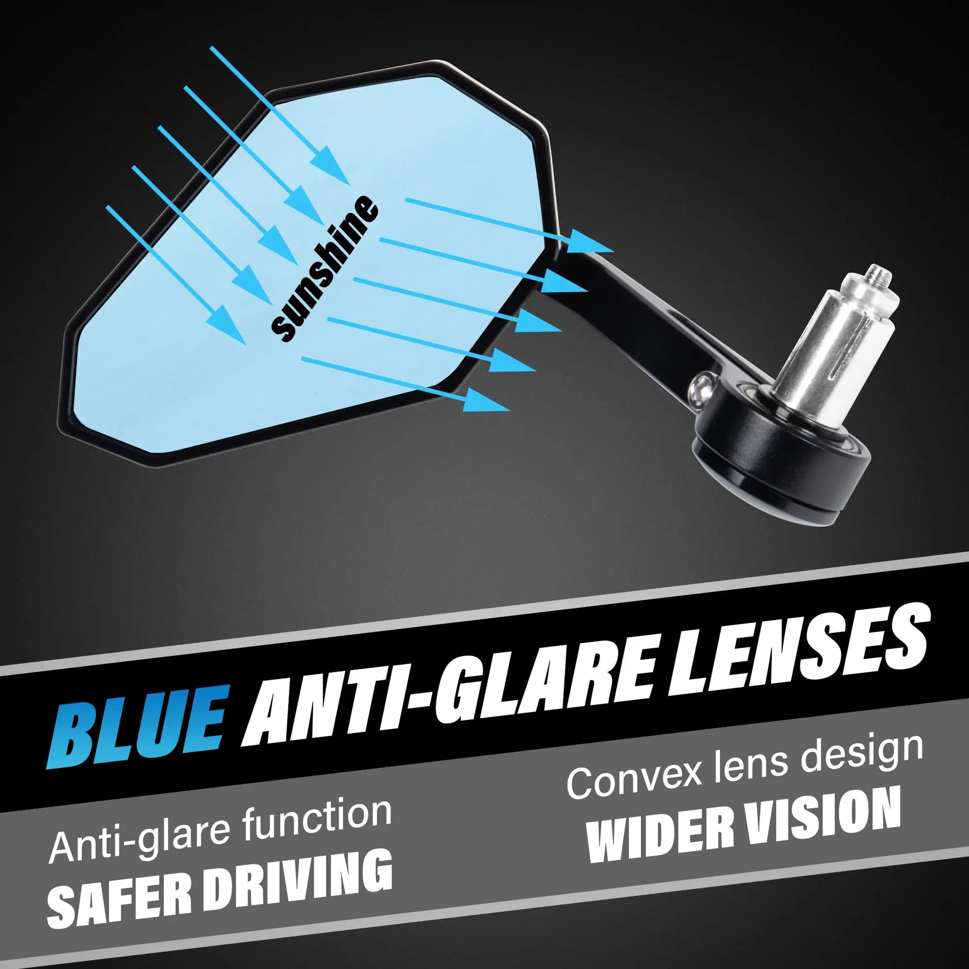 Anti-glare convex mirror lens for wide-angle rear visibility