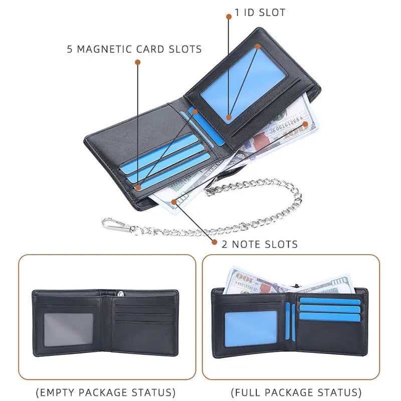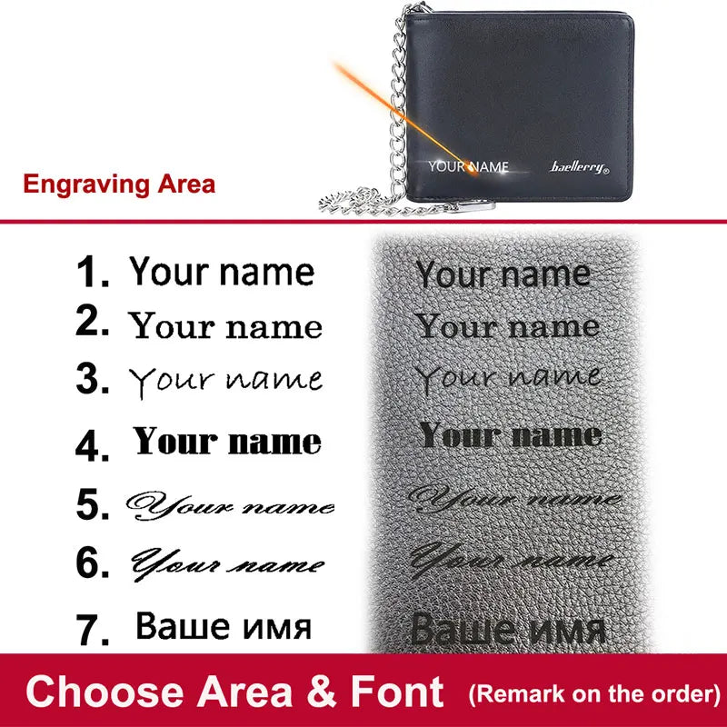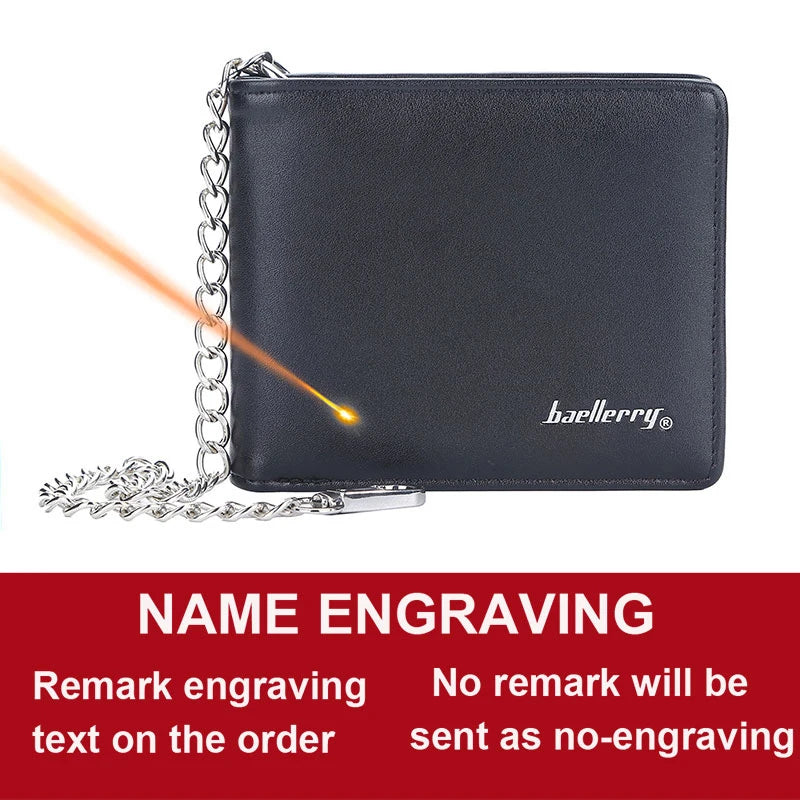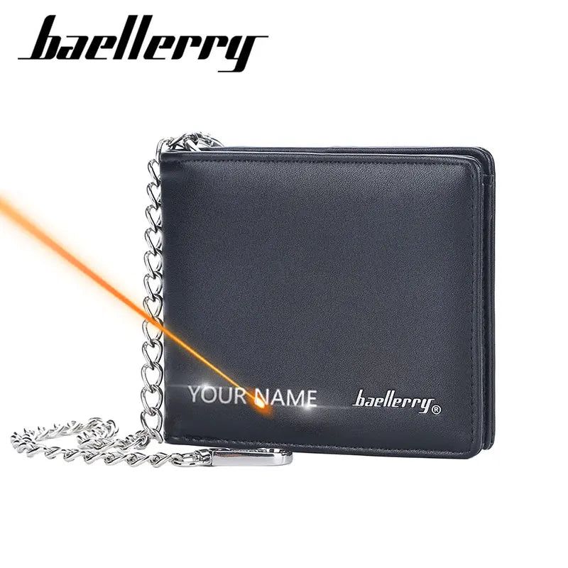 Baellerry Custom Name Wallet – Men’s Short Card Holder with Photo Slot & Chain