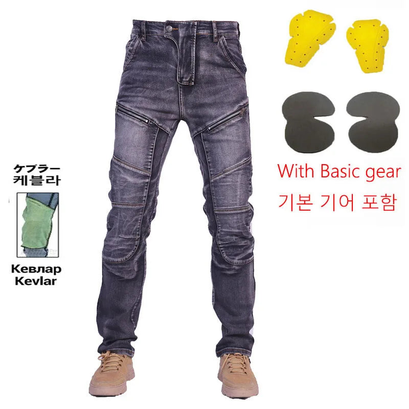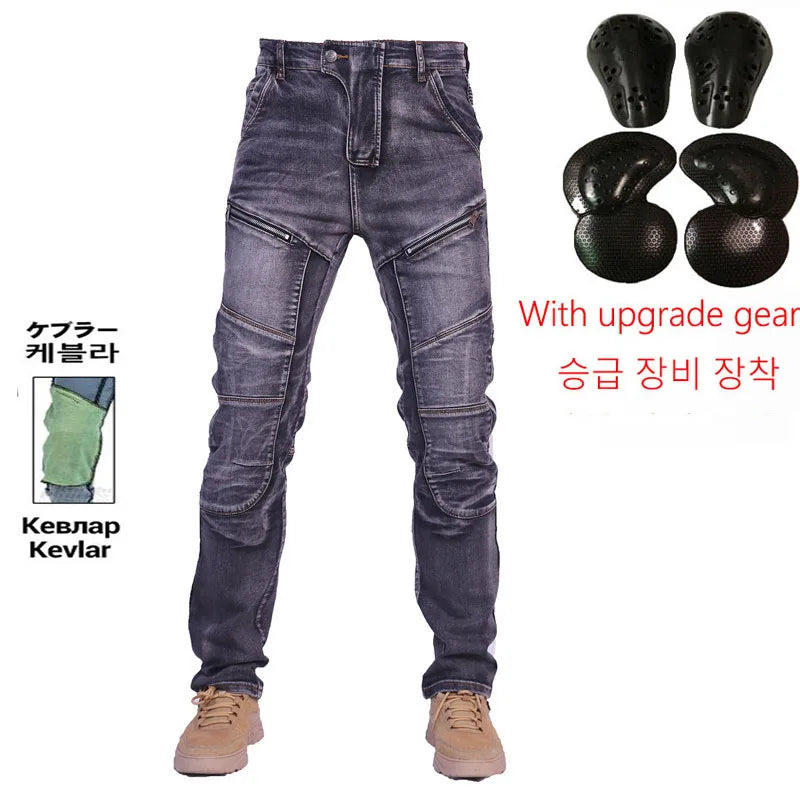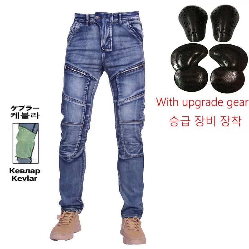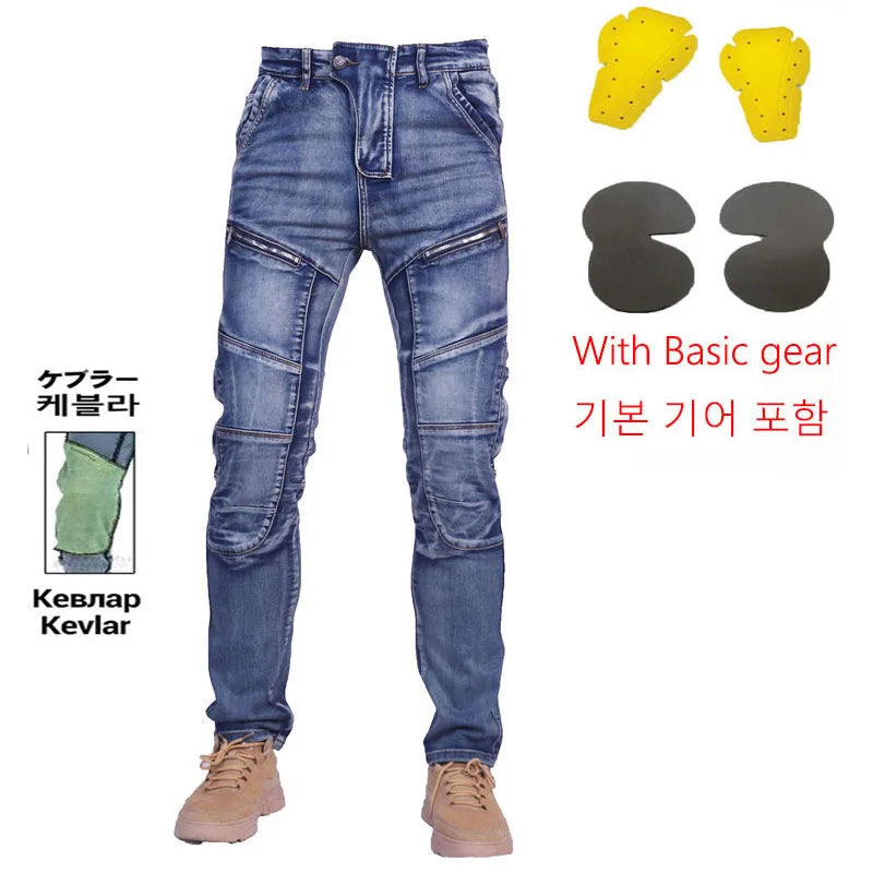 KV04 Amekaji Kevlar Motorcycle Jeans – Aramid Riding Pants with Hip & Knee Pads