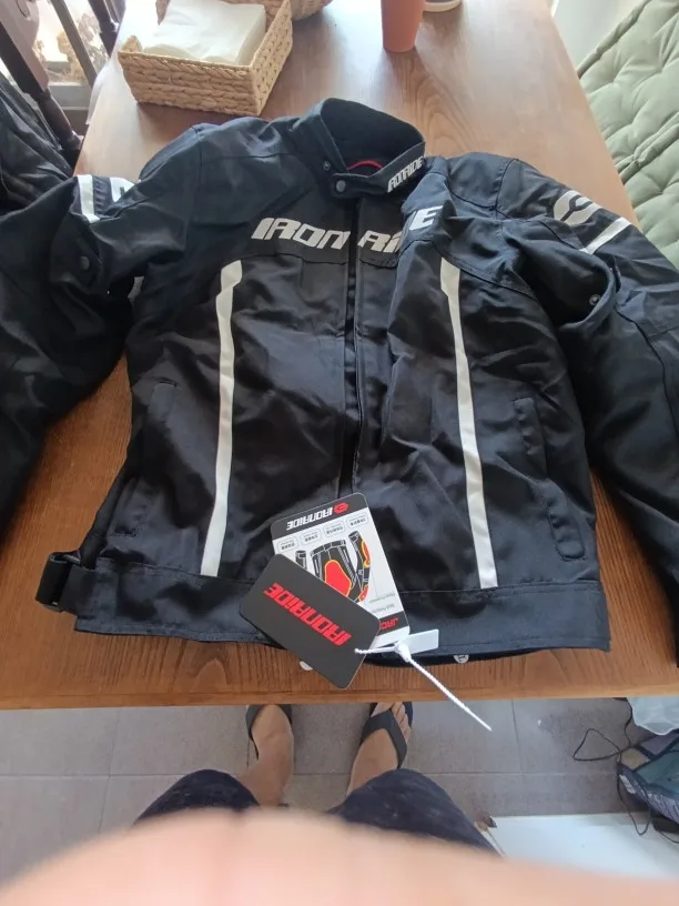 Full set includes jacket + pants with CE-certified protectors at elbows, shoulders, back, hips, and knees