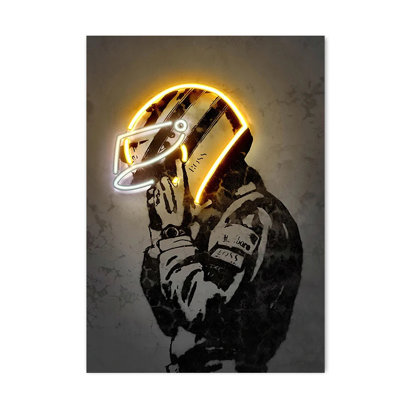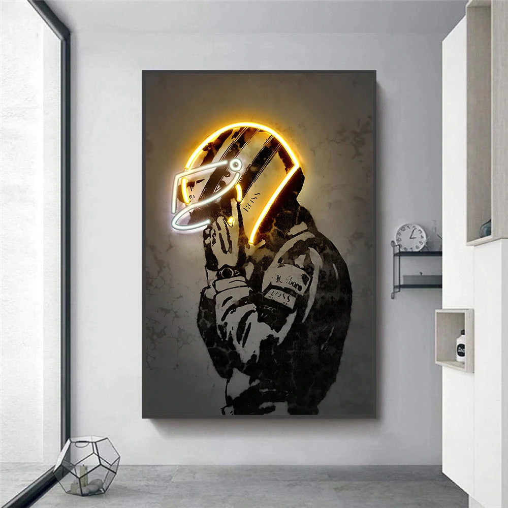 Neon Effect Motorcycle Helmet Poster – Music & Movie Star Canvas Wall Art for Bar, Living Room, Home Decor