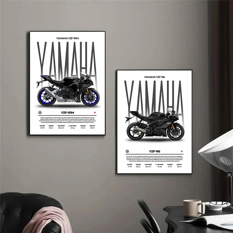 Fuel your decor with speed and style—add these Yamaha performance posters to your space today!