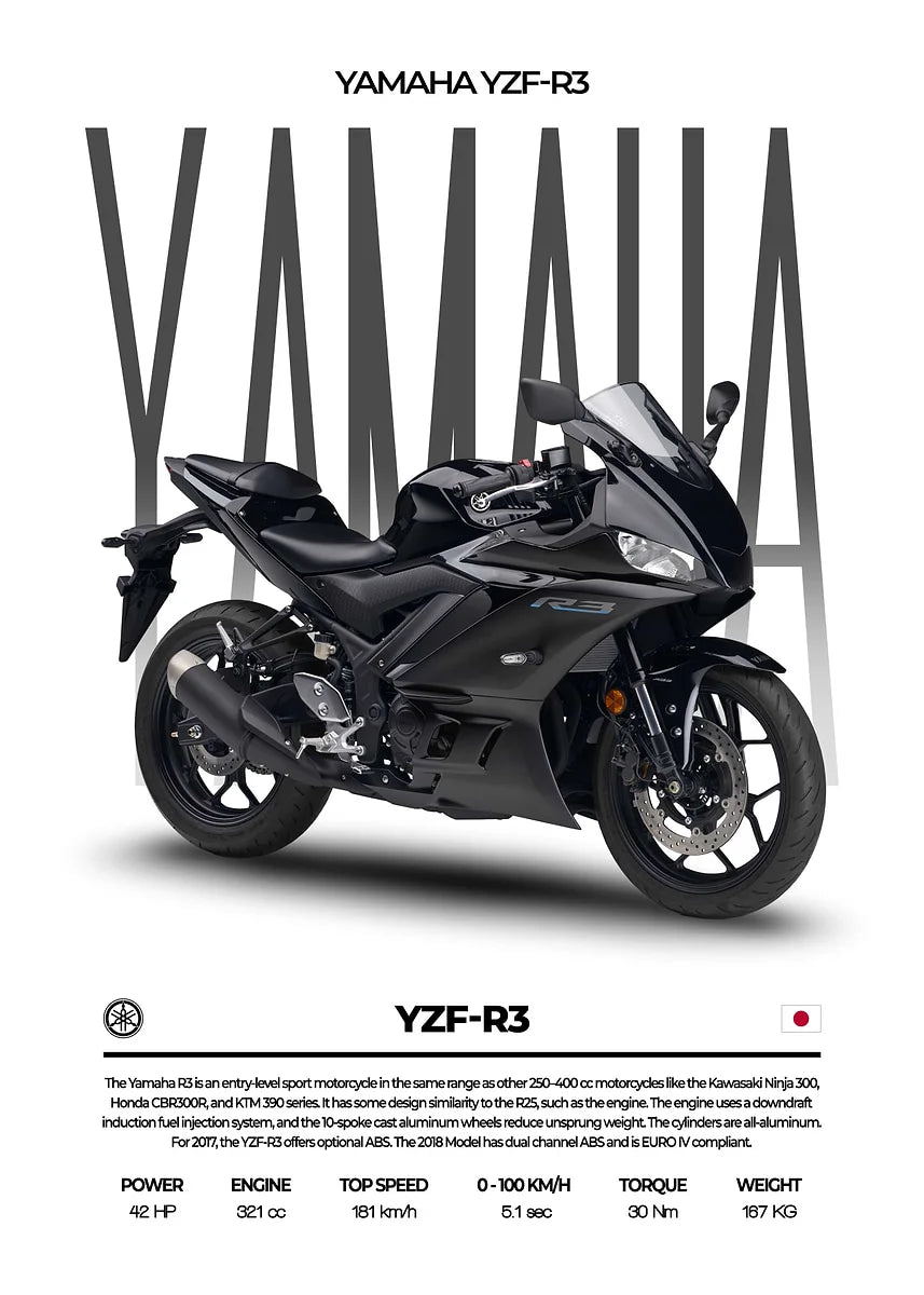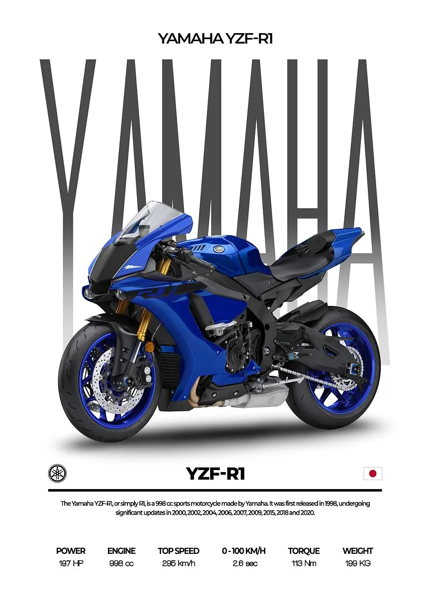 Showcases Yamaha motorcycle performance themes in dynamic, stylish designs