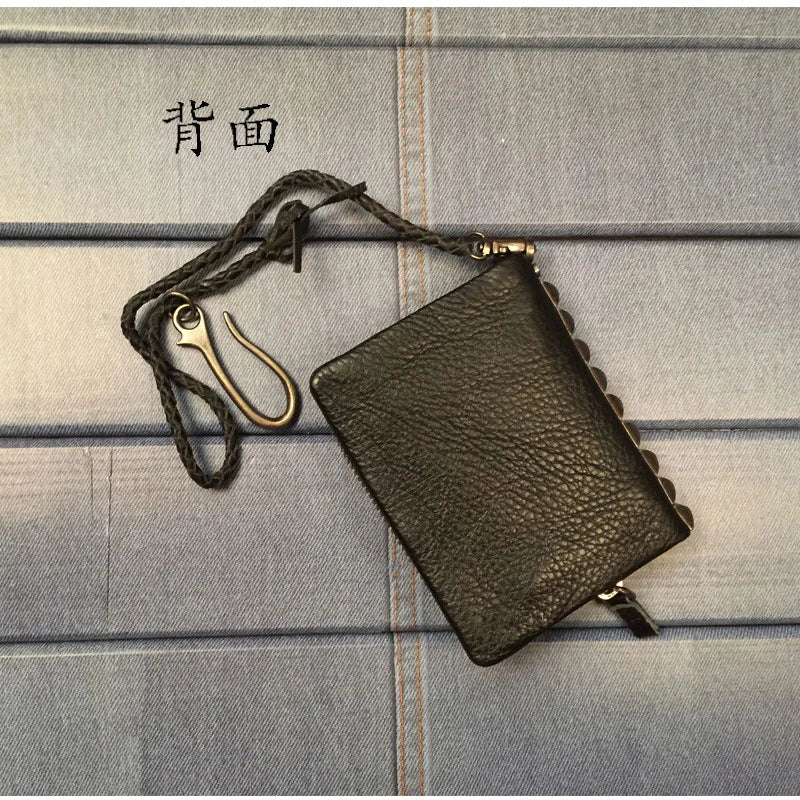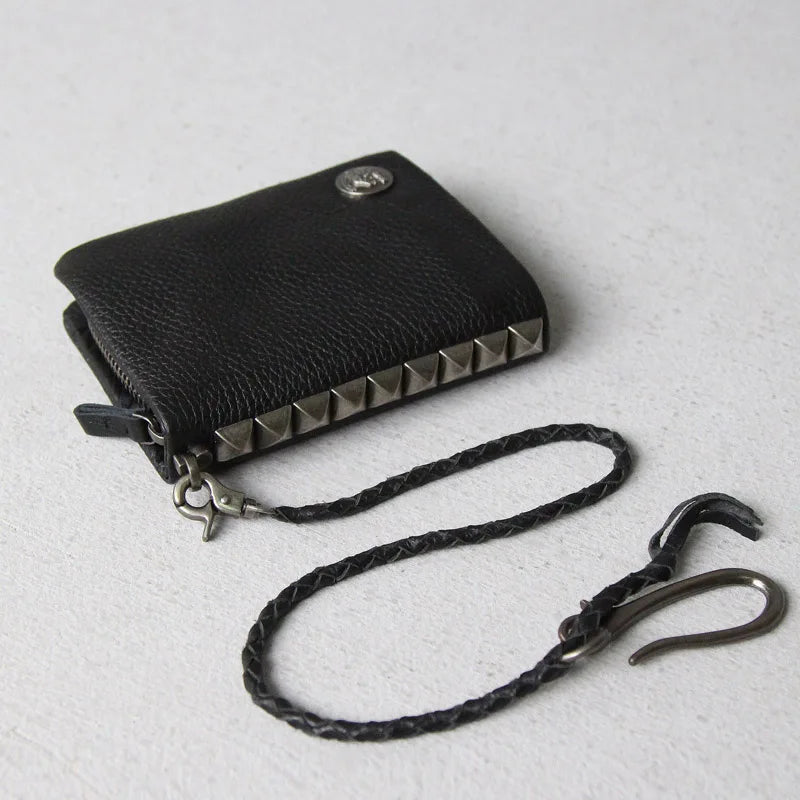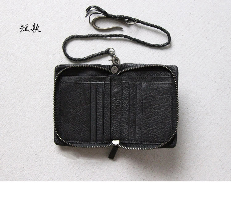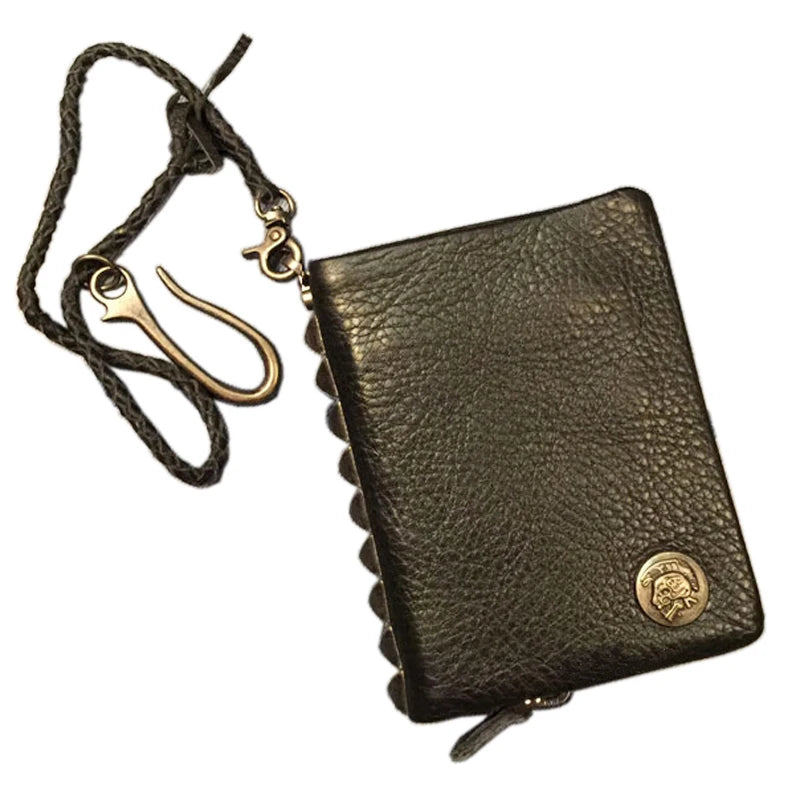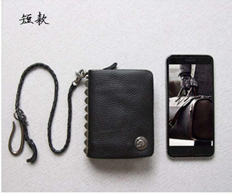 Vintage Punk Studded Leather Wallet – Men’s Short Chain Purse with Zipper & Money Clip