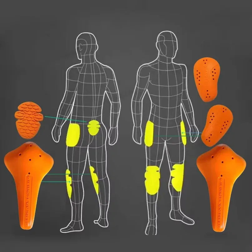 Premium denim fabric blended with Kevlar (aramid fiber) lining in critical areas like hips, knees, and thighs for enhanced abrasion resistance.