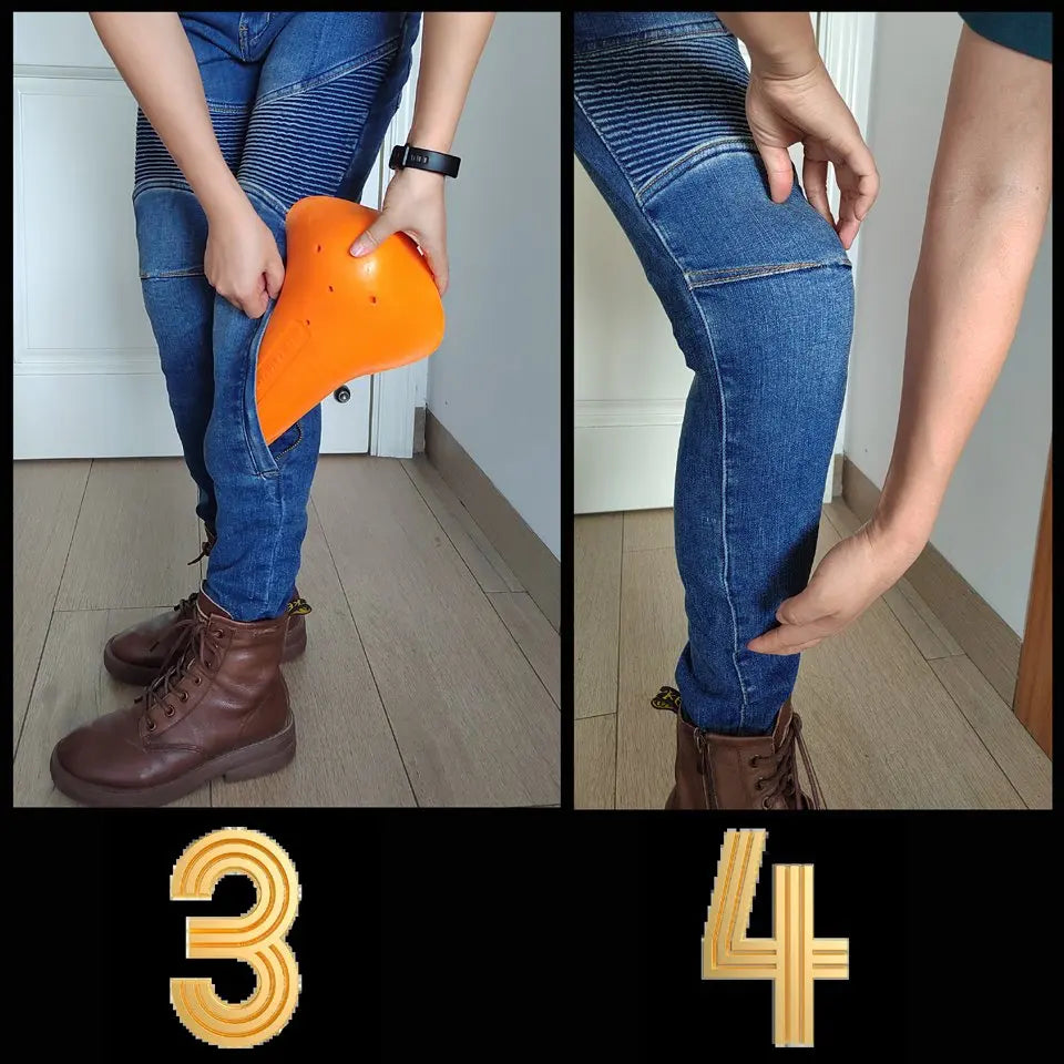 Ride smart, ride safe, and stay chic — with Women’s Kevlar Moto Jeans, where protection meets everyday style!